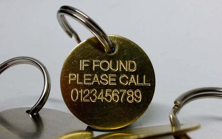 Engraved “IF FOUND PLEASE CALL (your phone number)”